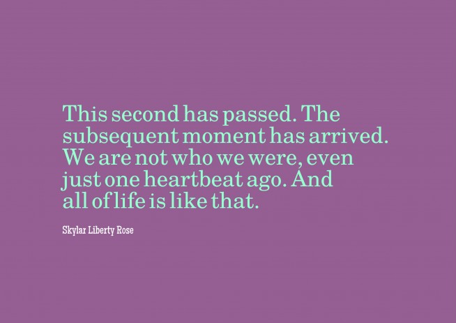 This second has passed. The subsequent moment has arrived. We are not who we were, even just one heartbeat ago. And all of life is like that.