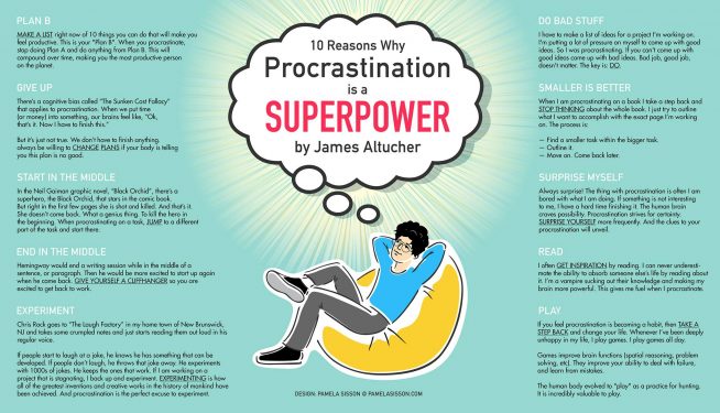 And I did that “one thing”. Every day. It added up. It multiplied. It made me friends. It built my network. It made me creative. And procrastination continues to guide me still every day.